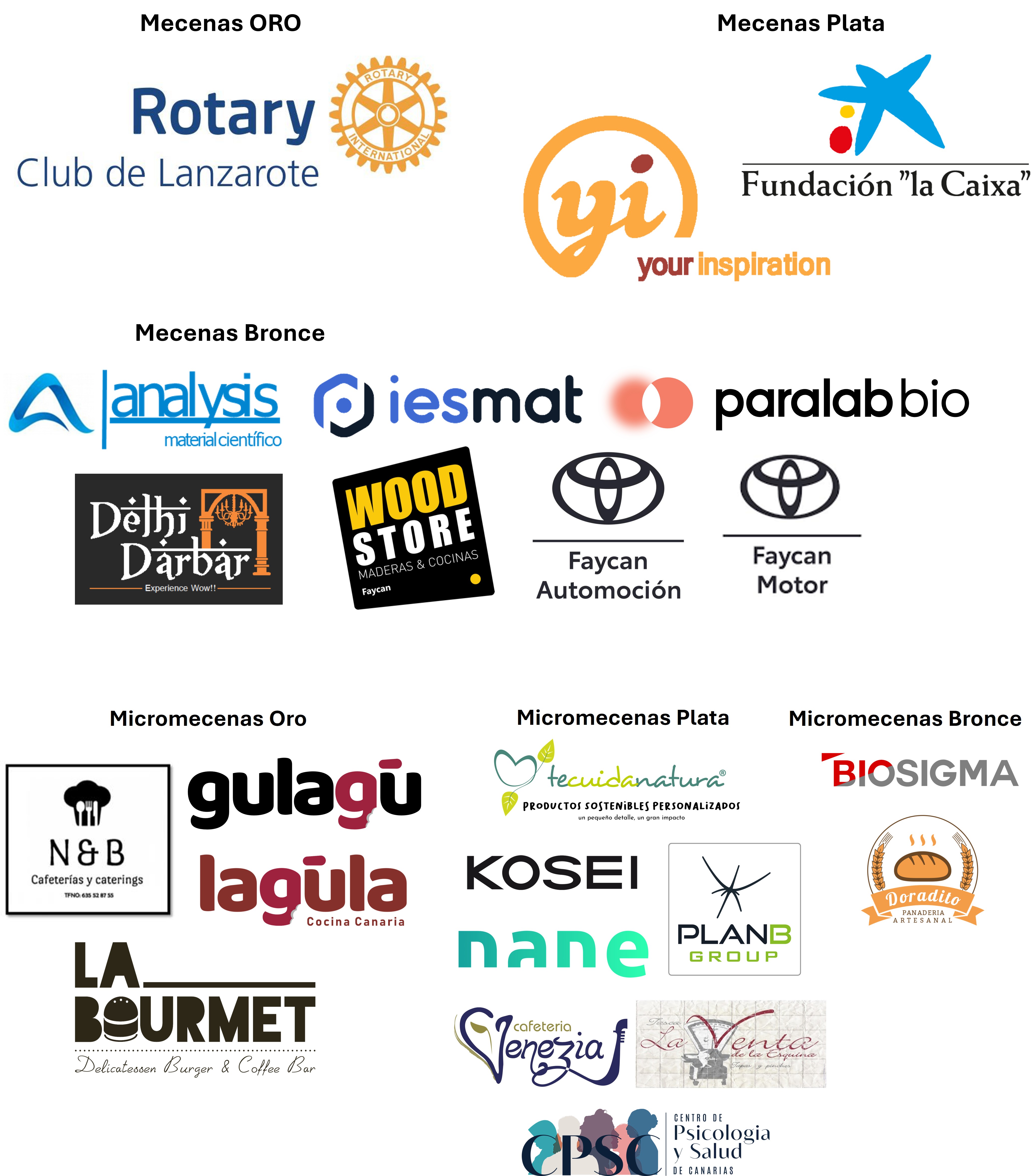 - Micromecenas plata: TeCuidaNatura, Plan B Group, Laboratorios Kosei, Nane Equipamientos, Venezia y La Venta, y Centro de Psicología y Salud de Canarias.